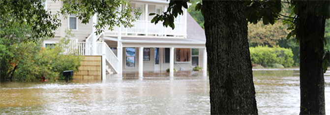 A flooded home in the south of the United States